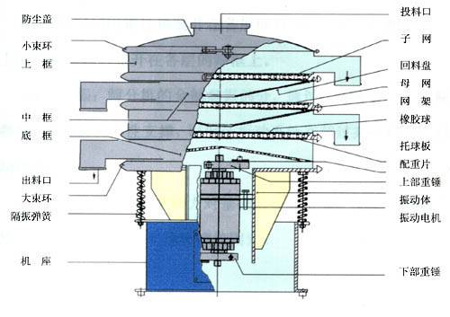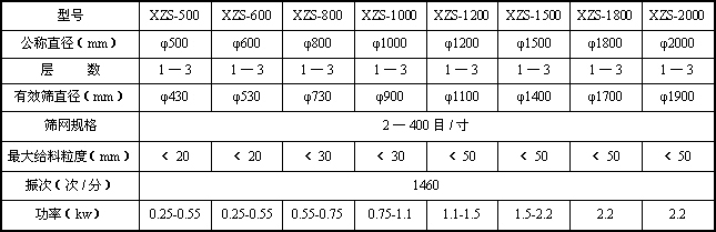 XZS系列旋振篩是在S49系列旋振篩的基礎(chǔ)上,吸收國(guó)內(nèi)外先進(jìn)技術(shù),并采用先進(jìn)的加工工藝而設(shè)計(jì)的高精度篩分過(guò)濾機(jī)械,它是以立式振動(dòng)電機(jī)或?qū)S眉ふ衿鳛檎駝?dòng)源,立式振動(dòng)電機(jī)(或激振器)上、下端裝有偏心重錘,可產(chǎn)生水平、垂直、傾斜的三次元運(yùn)動(dòng),通過(guò)調(diào)節(jié)上、下偏心重錘的相位角,改變物料在篩面上的運(yùn)動(dòng)軌跡以達(dá)到篩分各種物料的目的。該產(chǎn)品適用于任何粉、粒、液的篩分和過(guò)濾的行業(yè)。廣泛用于化工、醫(yī)藥粉、液、涂料、顏料、化妝品、油脂、樹脂、陶瓷漿、粘土泥漿、生石灰、耐火材料粉末,冶金粉末、電磁粉末、研磨粉、果汁、飲料、食糖、食鹽、味精、調(diào)料、奶粉、淀粉、面粉、米粉、碳粉、石墨粉、錳粉、碳酸鋰、助溶劑、滅火劑以及環(huán)保行業(yè)的污水、廢水處理的工藝過(guò)程中的篩分、過(guò)濾。